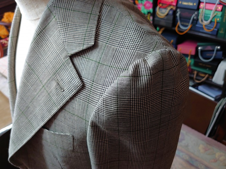 グレンチェック好きな自分の中でもオーバーチェックがグリーンのこの生地は本当にセンスがいいと思います。