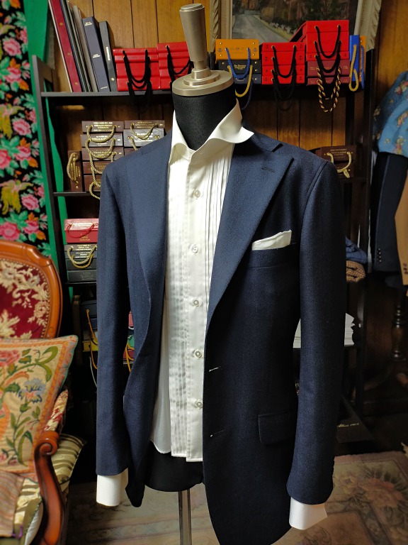 当店でもタキシードをお作りしていますが通常のスーツでもドレッシーに着こなすことは可能です。
