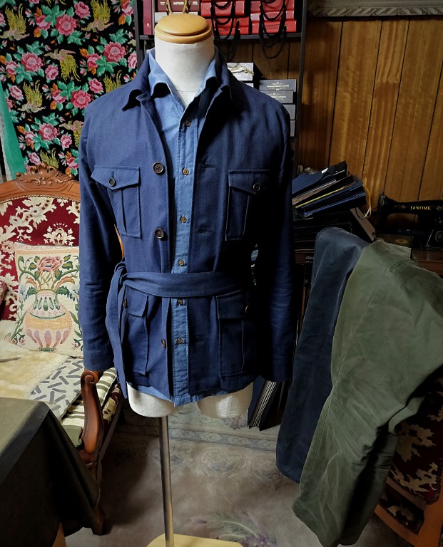 素材を替えると様々な着こなしが楽しめるオーダーサファリシャツ。